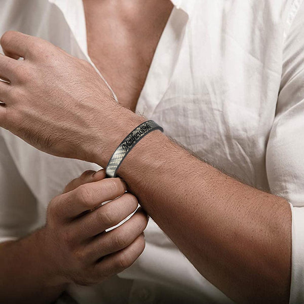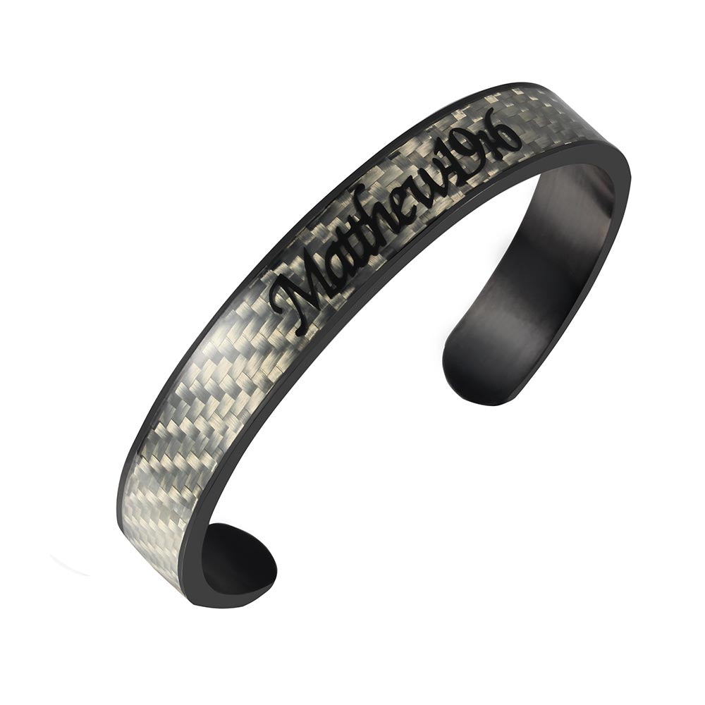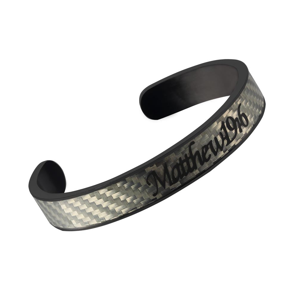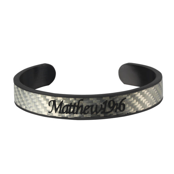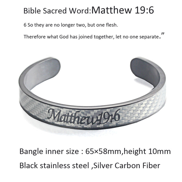 Sacred Word Matthew 19:6 Silver Carbon Fiber Black Stainless Steel Cuff Bangle Open Bracelet