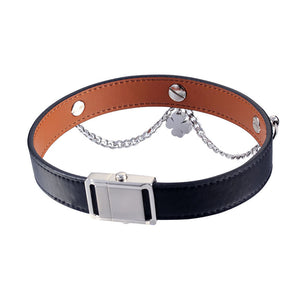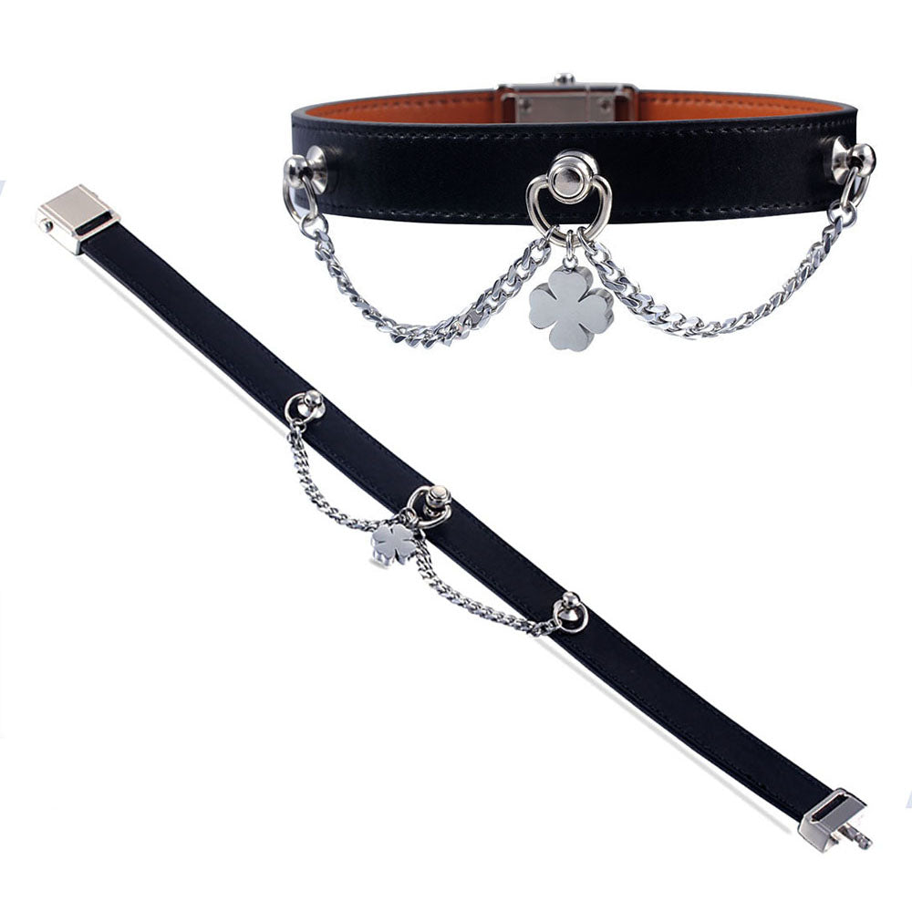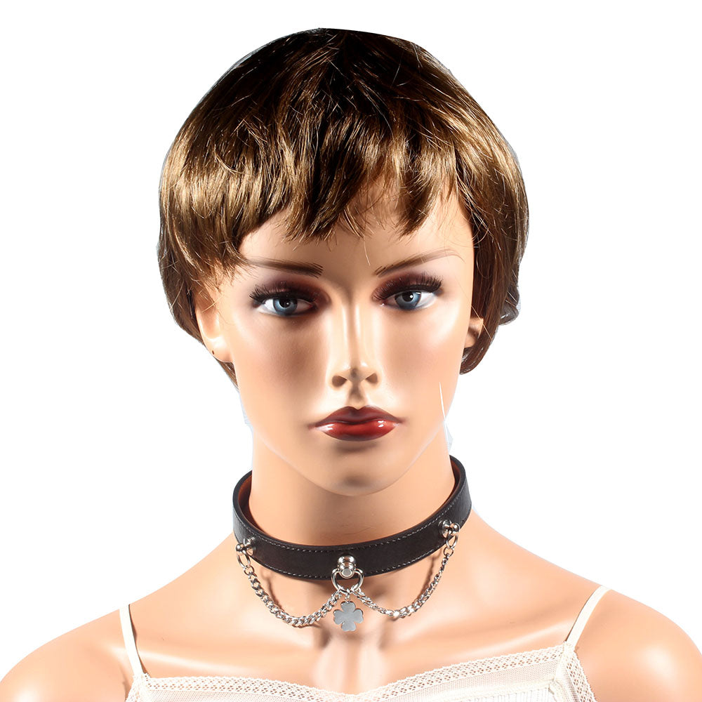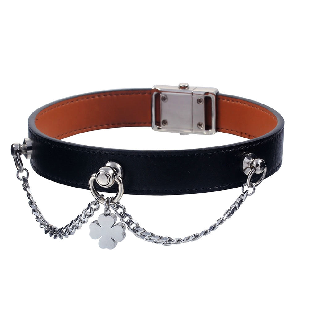 New Steel Four Leaf Clover Pendant Tassel Chain Button Buckle Sexy Punk Leather necklace collar Choker Necklaces 36CM