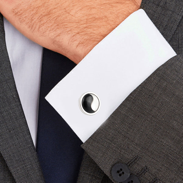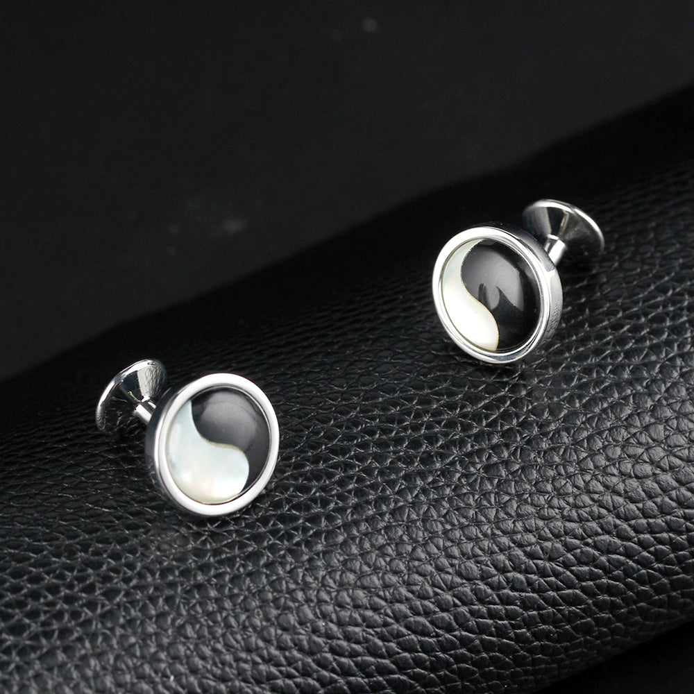1. National style tai chi gossip agate shell Copper Cufflinks