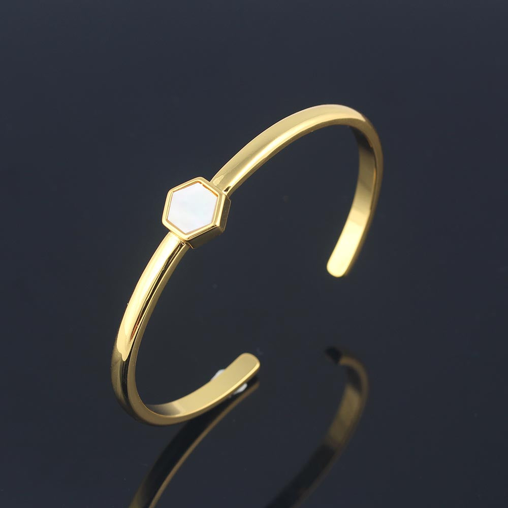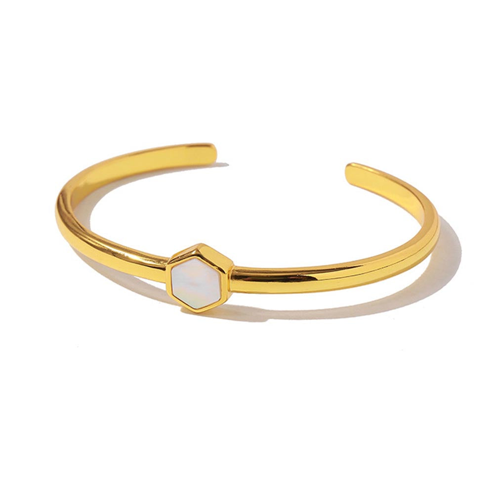 1.White Shell steel Polygon Open Bracelet Bangle.